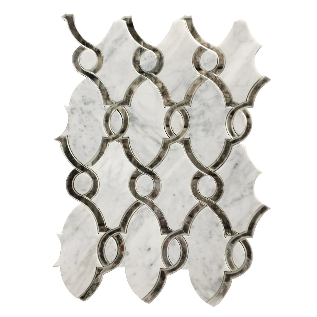 Carrara White & Antique Mirror 12-in x 12-in Waterjet Mosaic Wall Tile(1-sq. ft/ Piece)