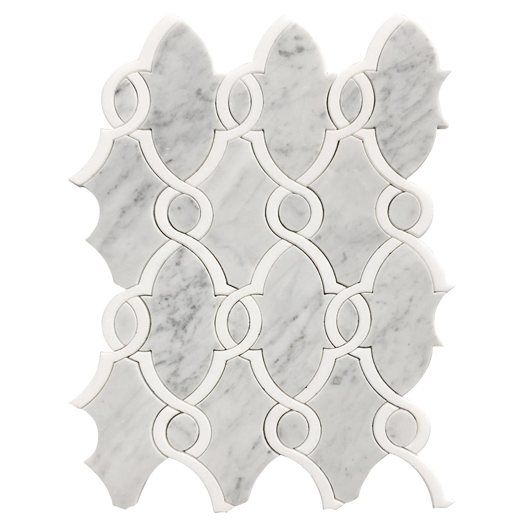 Carrara & Thassos Soft Floral Marble 7-in x 12-in Waterjet Mosaic Floor and Wall Tile(0.6-sq. ft/ Piece)