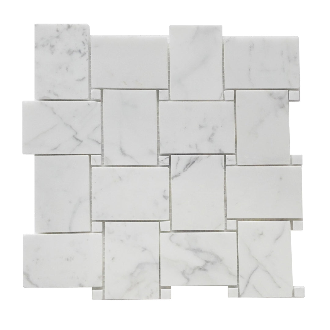Calacatta Basketweave 11-in x 11-in Polished Mosaic Floor and Wall Tile(0.84-sq. ft/ Piece)