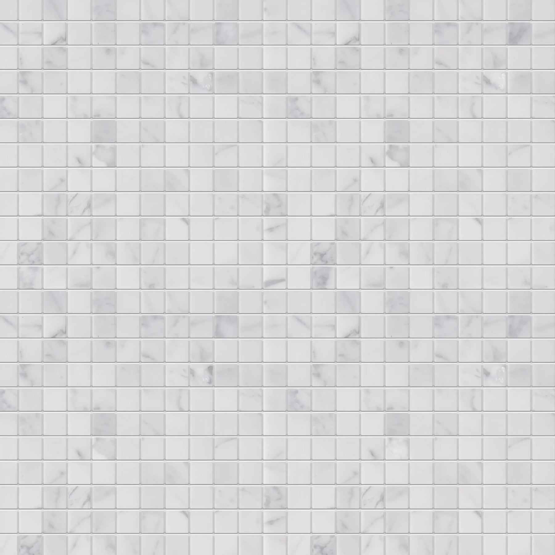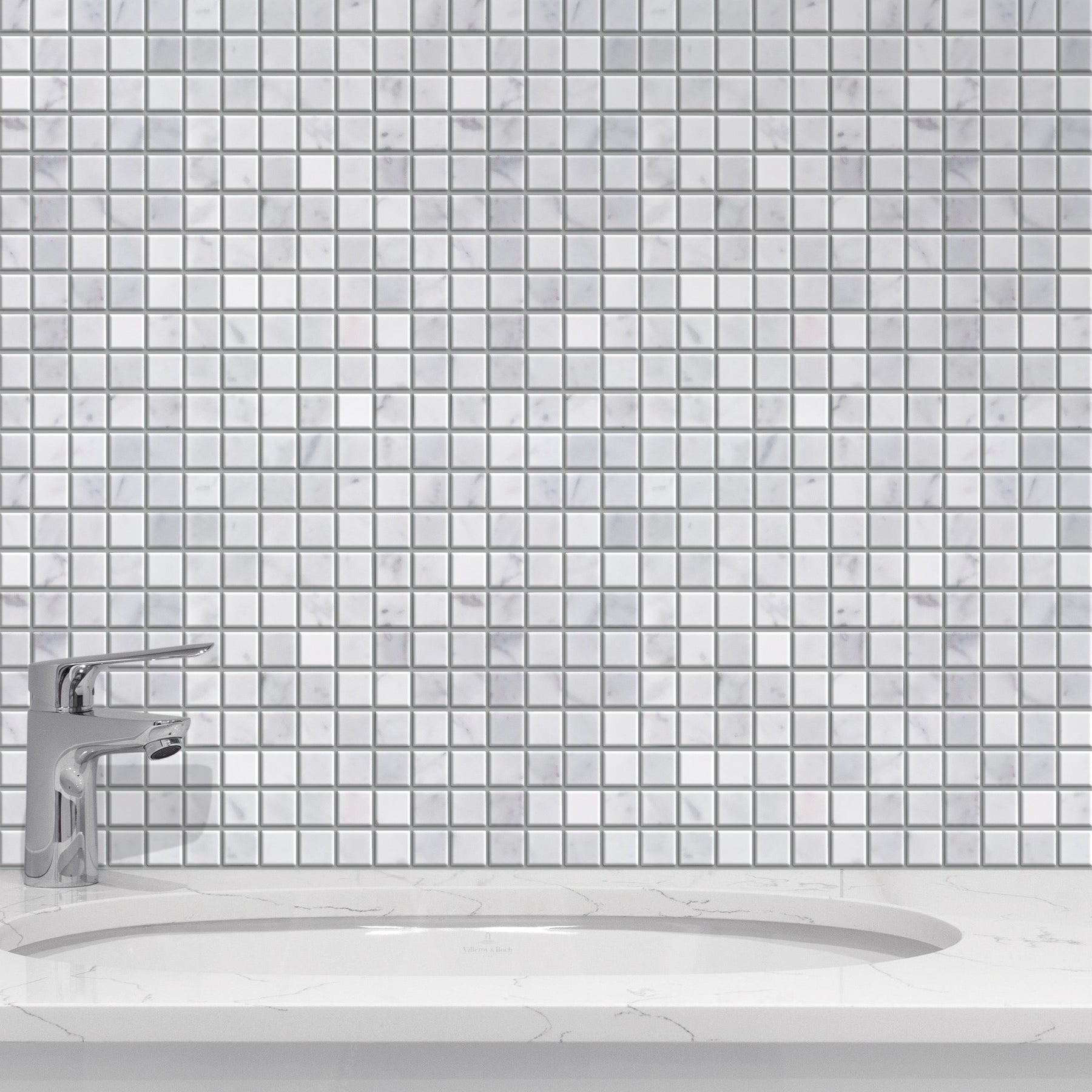 Transform your space into a masterpiece with the 1"x1" Oriental White Polished Marble Mosaic, a perfect blend of elegance and practicality for any room in your home or business.
