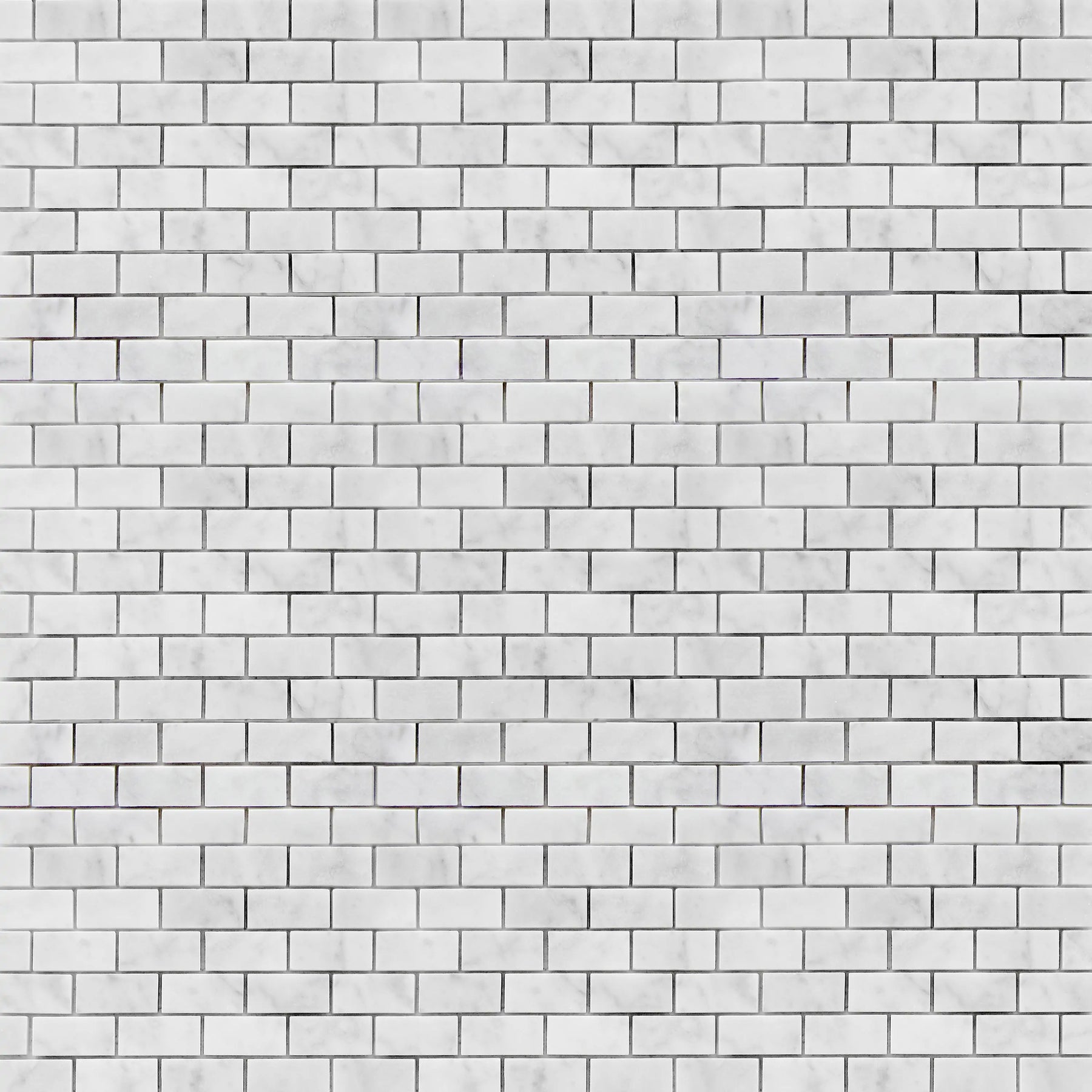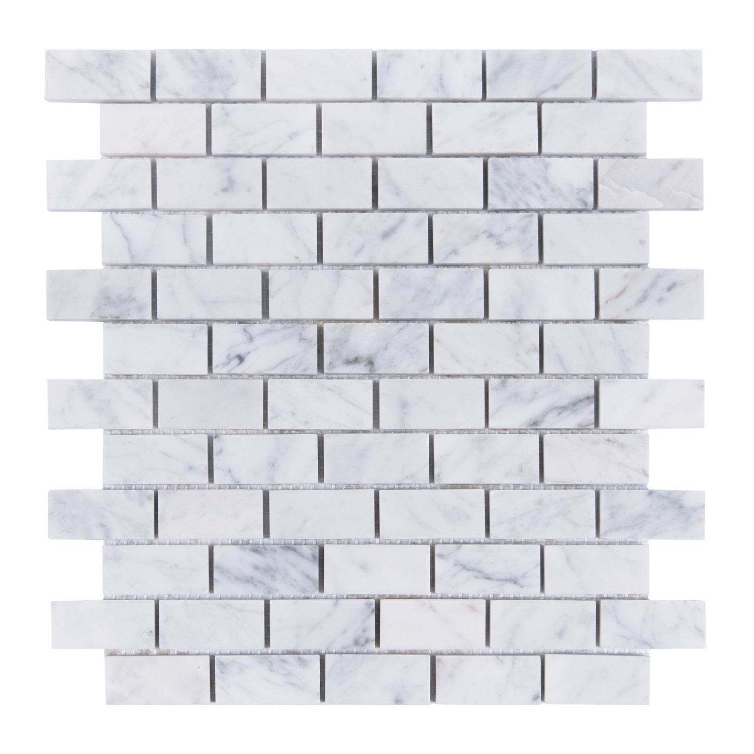 Transform your home with the exquisite beauty of the 1"x2" Carrara White Polished Brick Mosaic – a perfect combination of elegance and functionality for any space.