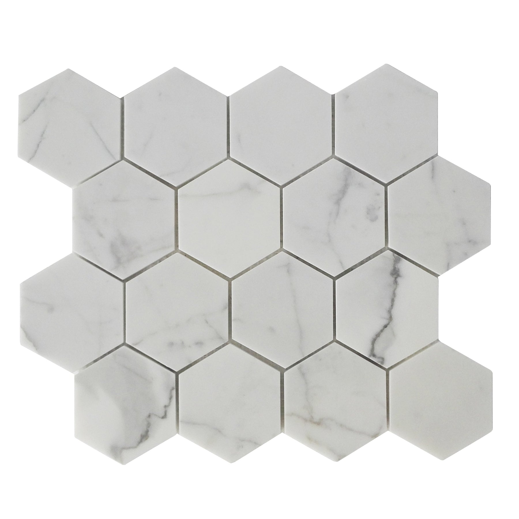 3-in Calacatta Hexagon Honed Real Calacatta Gold 12-in x 10-in Marble Mosaic Floor and Wall Tile(0.83-sq. ft/ Piece)