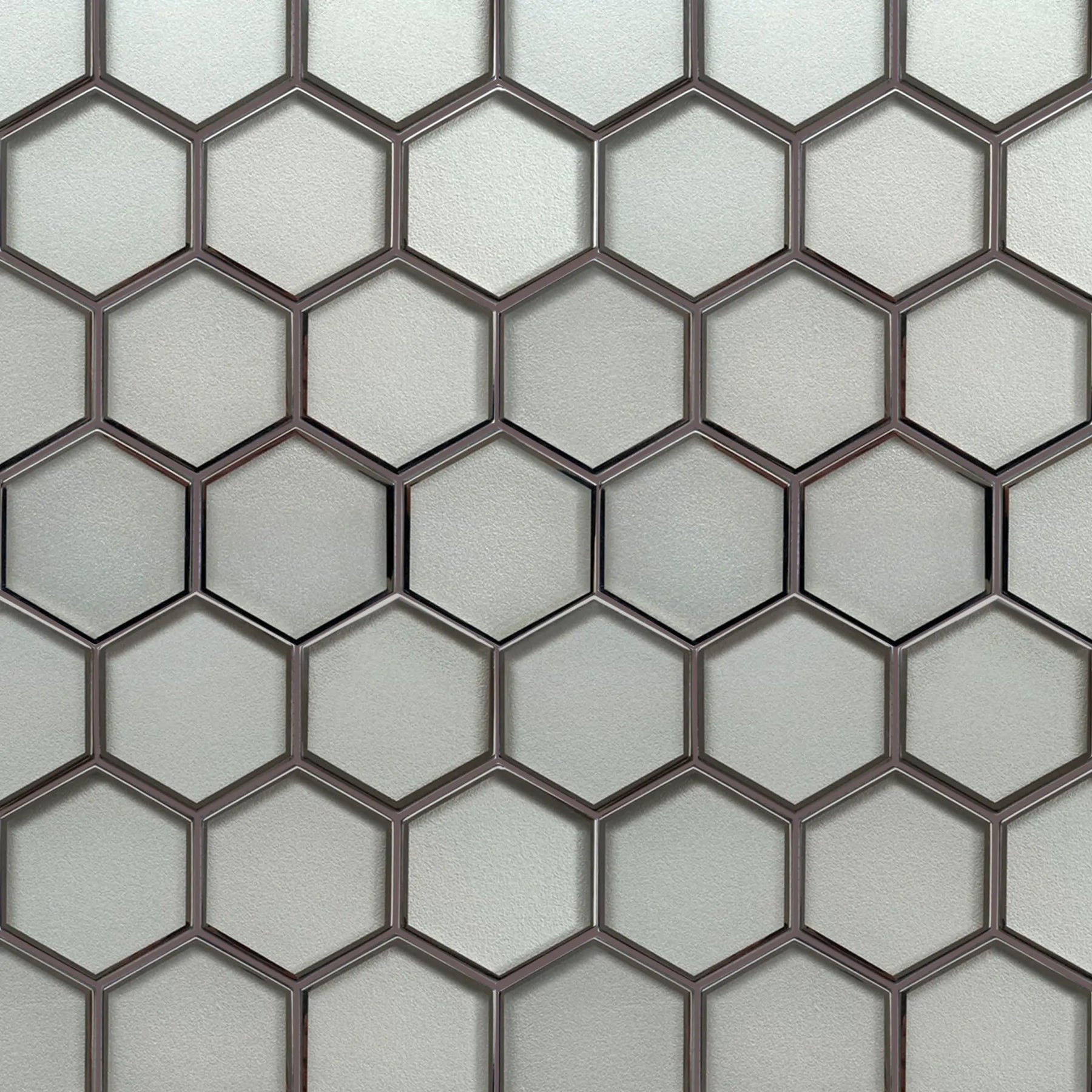 3” Hexagon Silver 9-in x 11-in Glass Mosaic with Silver Trim Glass Mosaic Wall Tile(0.7-sq. ft/ Piece)