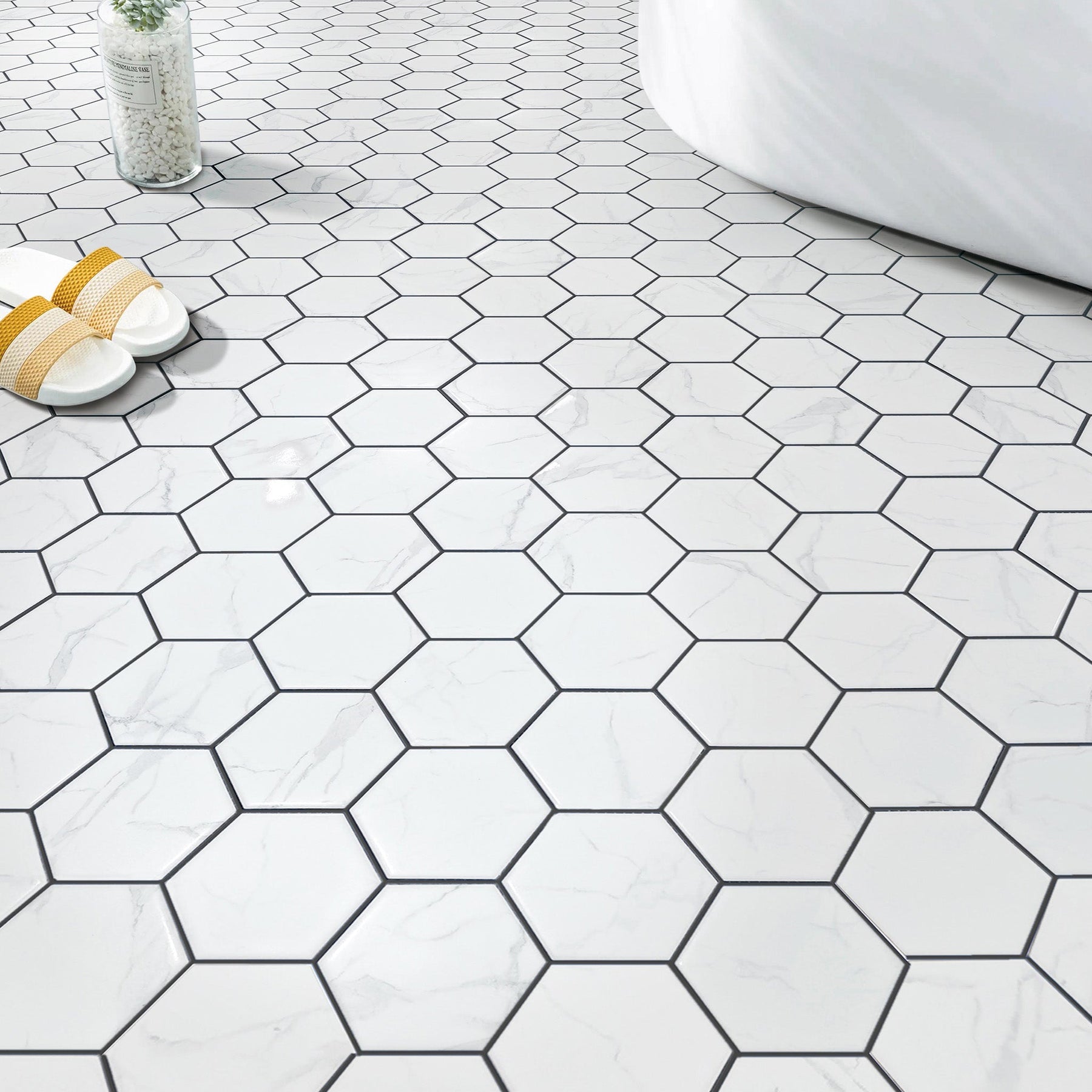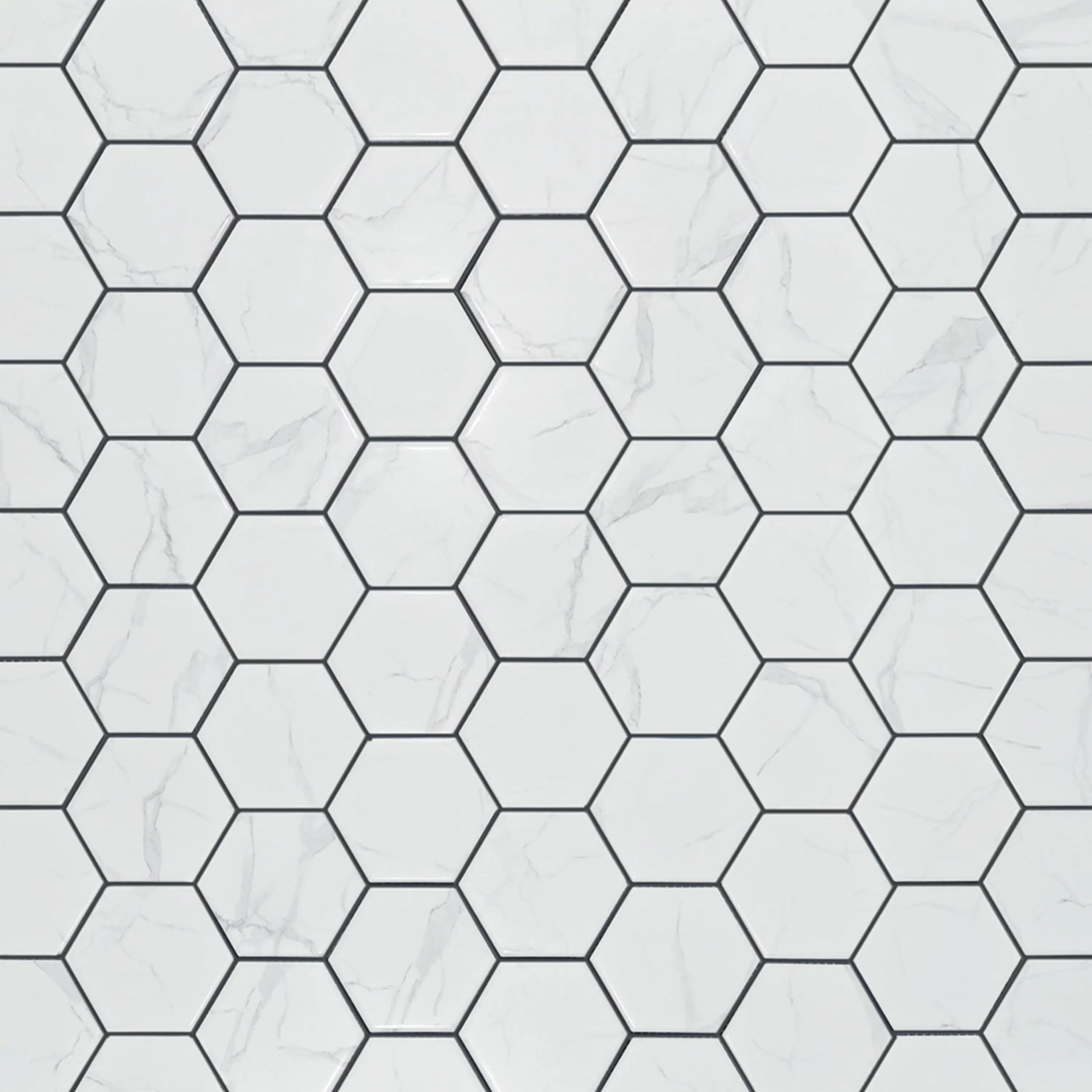4-in Hexagon 12-in x 10-in Porcelain Glazed Statuario Satin Mosaic Floor and Wall Tile(0.83-sq. ft/ Piece)