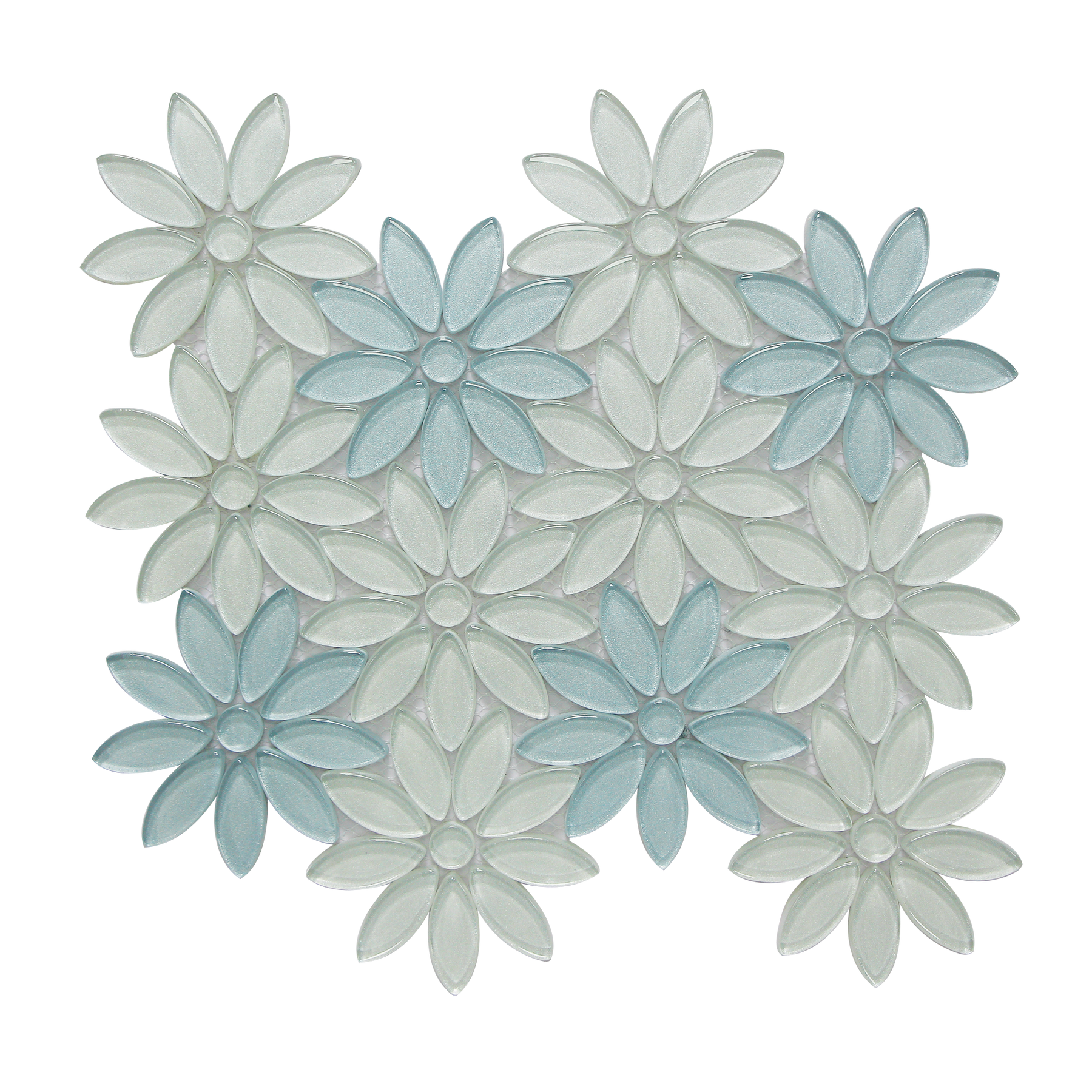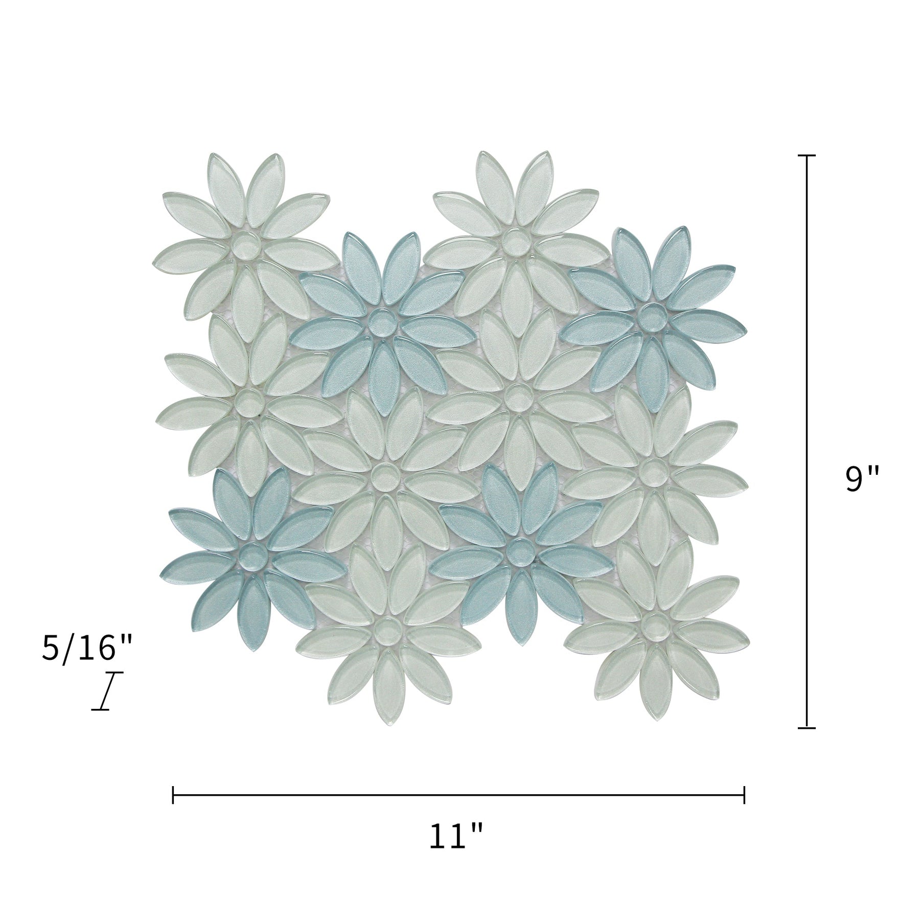 Dimension diagram of Blue & Taupe 9-in x 11-in Flower Glass Mosaic Tile – 0.69 sq. ft sheet