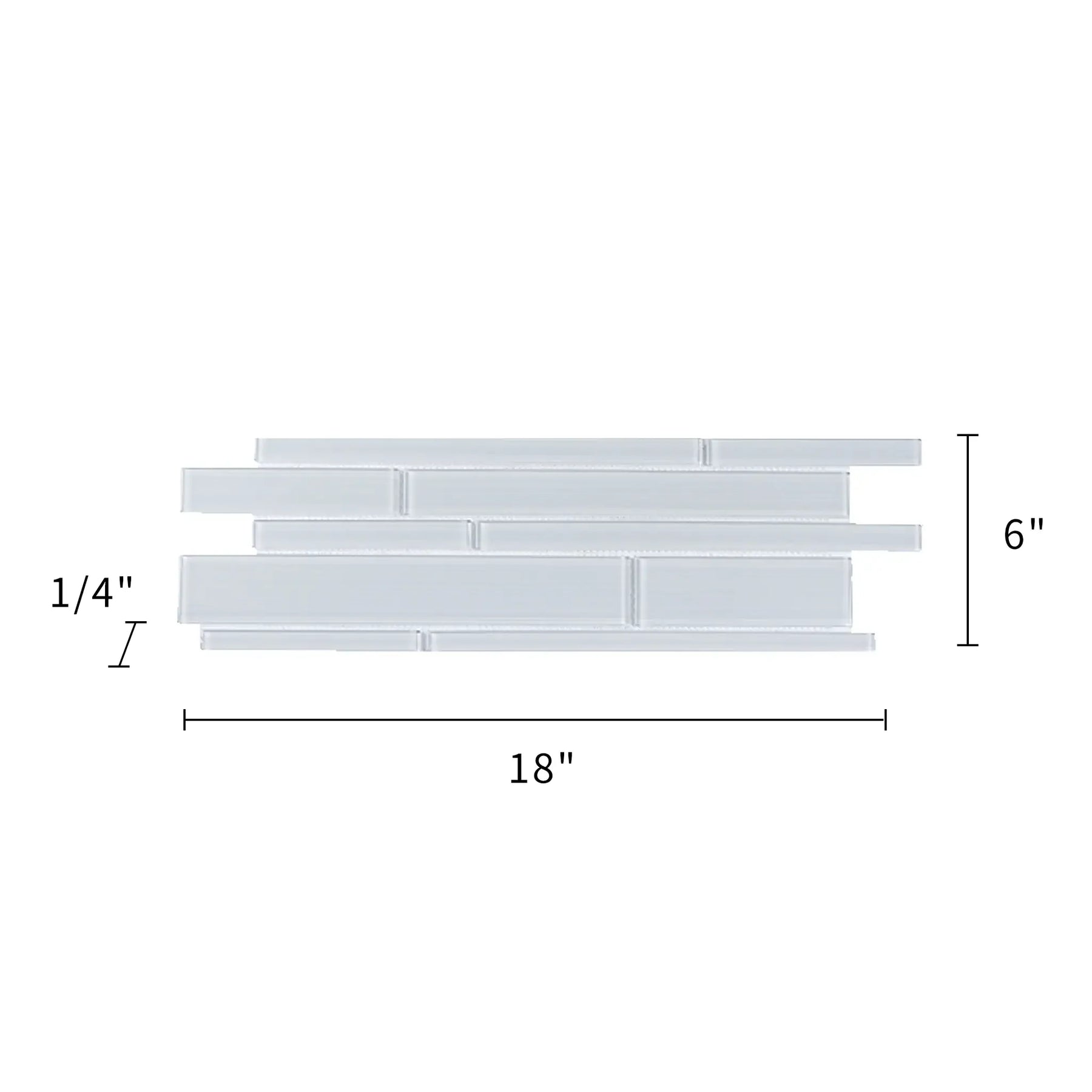 Size diagram of Ice Glass Mix Random Strip Decorative Tile – 6x18 inch layout with 0.75 sq. ft coverage for accurate installation.