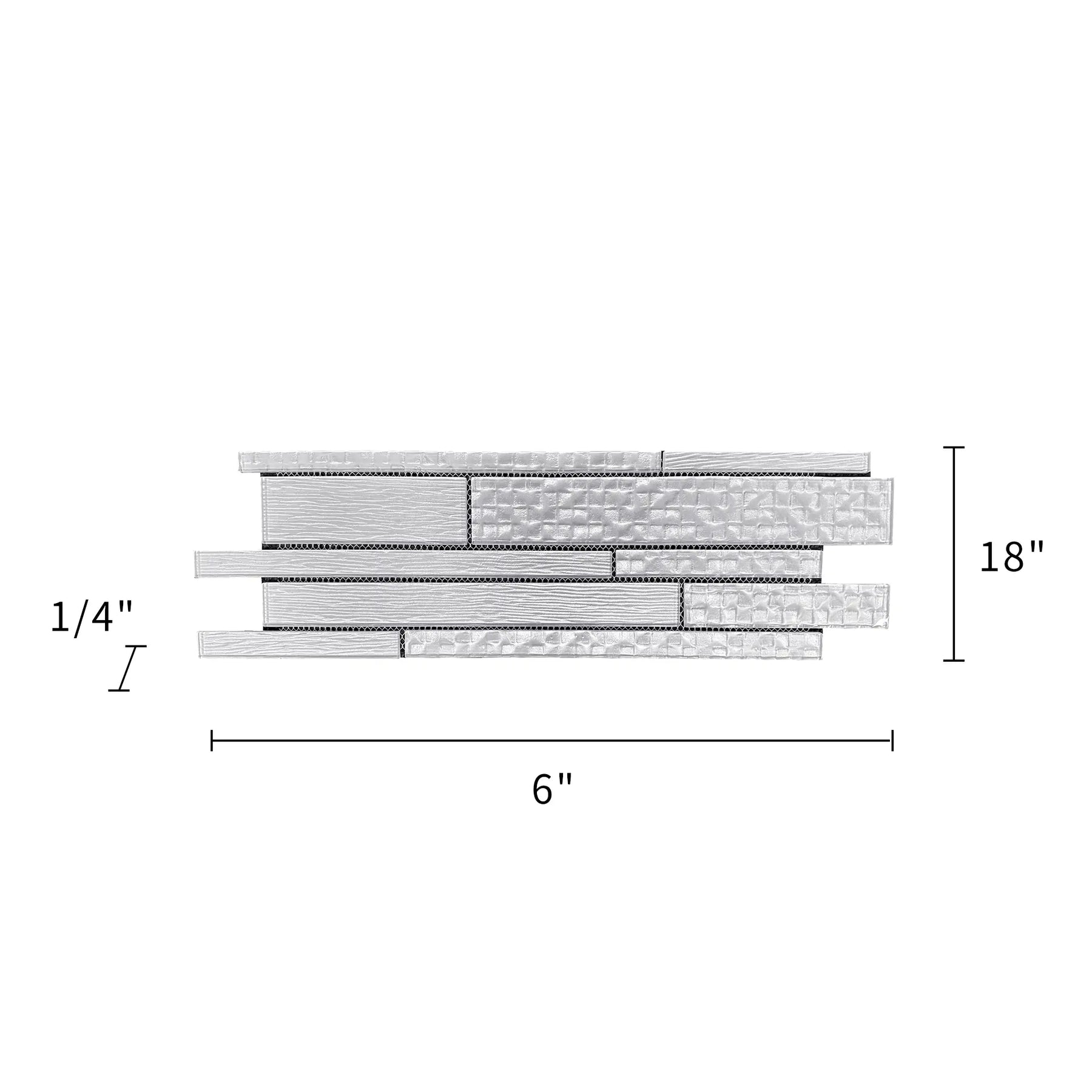 Single 6x18 inch Pure Glass Mix Random Strip Mosaic Wall Tile – sleek glass strips with a random pattern, 0.75 sq. ft per piece