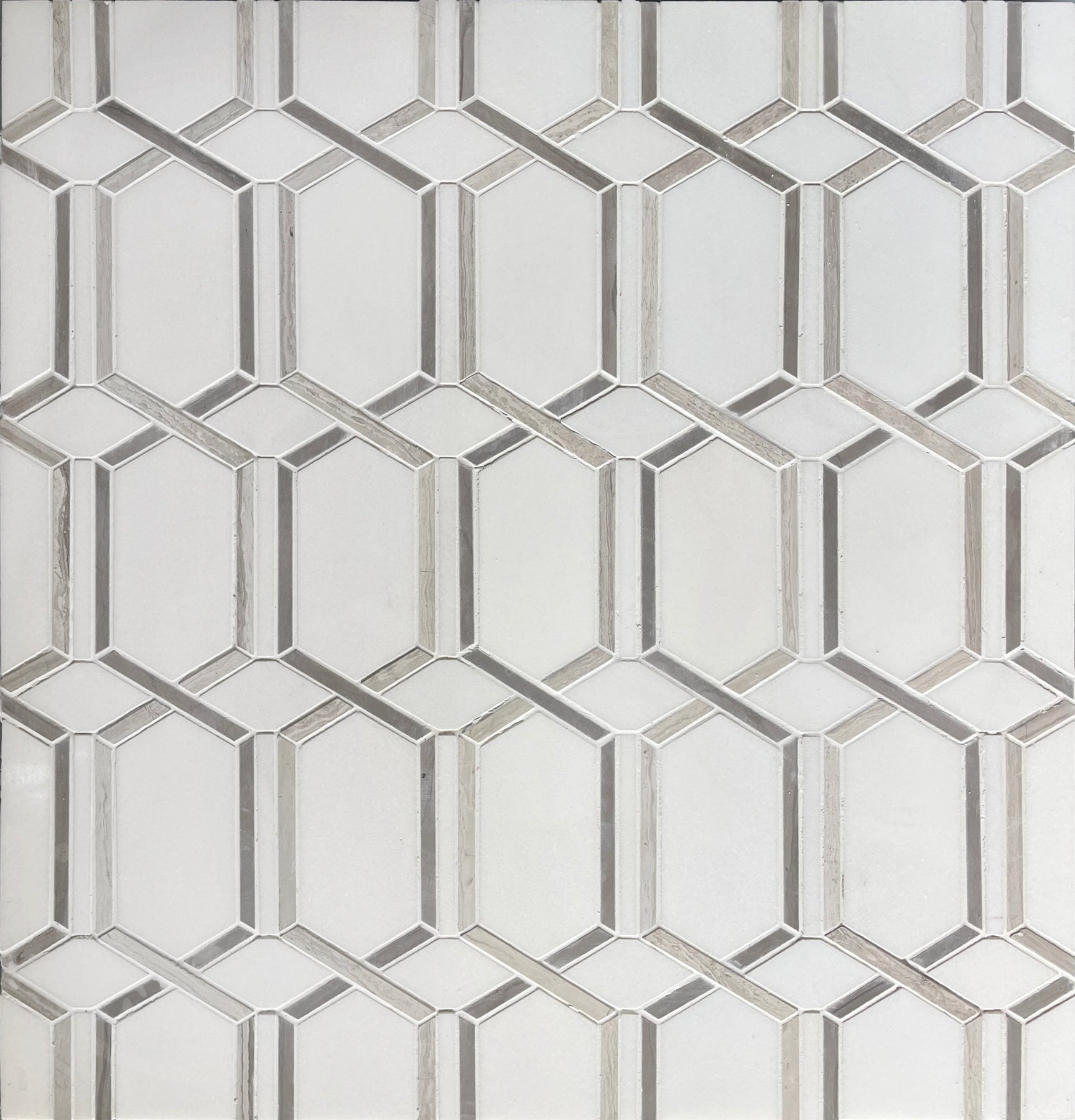 Elevate your space with the sophisticated charm of the Wooden White with Athens Gray and Thassos Marble Geometric Mosaic. This unique mosaic tile combines the elegance of Wooden White Marble, the cool tones of Athens Gray, and the pristine white beauty of Thassos Marble, creating a striking geometric pattern that adds depth and texture to any surface. Ideal for modern and contemporary designs, this mosaic brings together luxurious natural stone with an eye-catching pattern, perfect for creating focal points in your home.